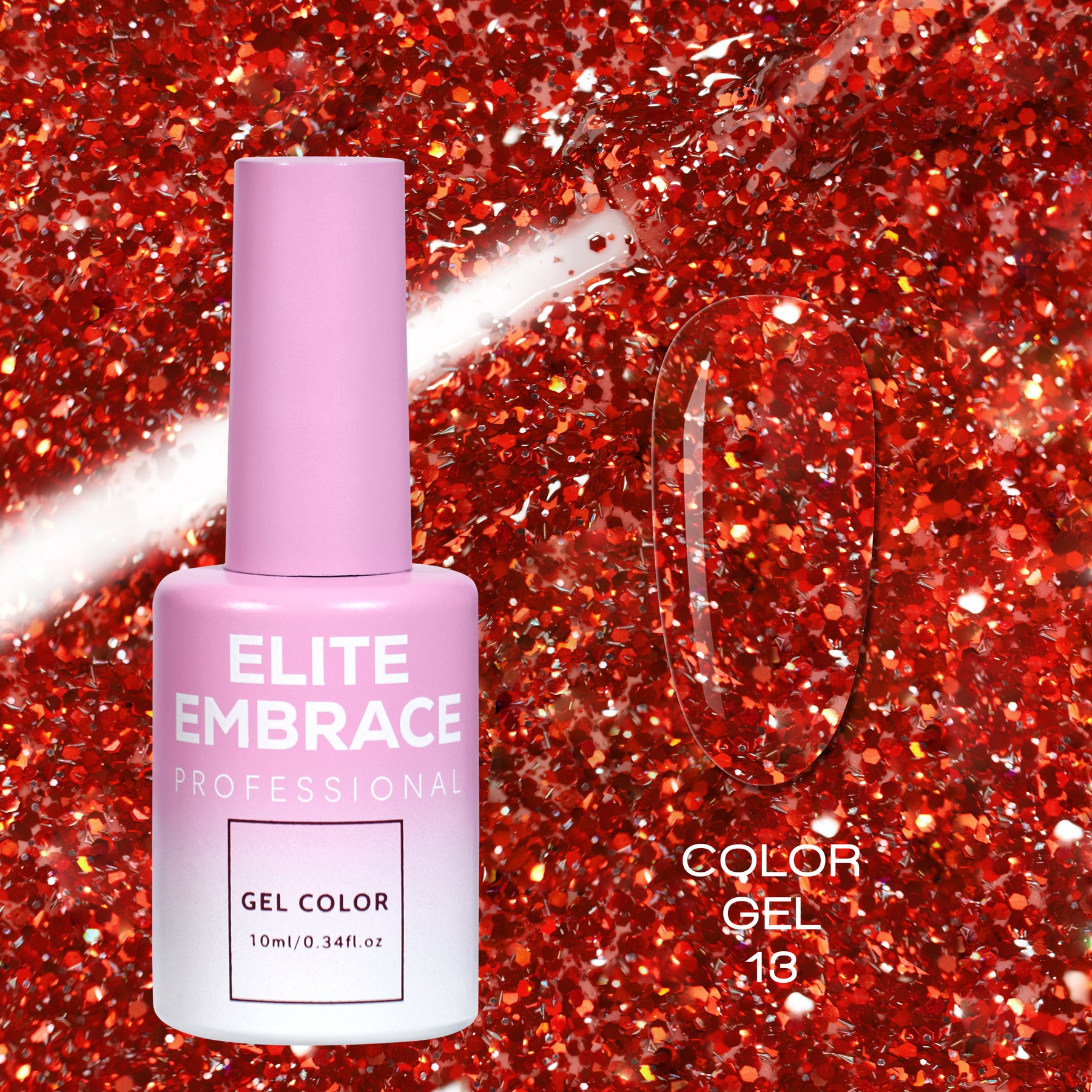 ELITE EMBRACE Professional Color Gel 13 with Glitter 10ml ECGG1310